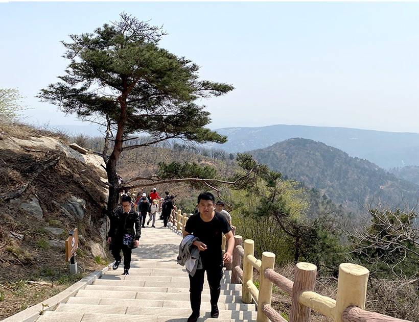 踩白紙游戲結(jié)束后,接下來就是活動(dòng)的重頭戲——團(tuán)隊(duì)登山。一個(gè)人的爬山可以說是一種修行,是挑戰(zhàn)自我的一種方式,那么一個(gè)團(tuán)隊(duì)一起爬山,則是一種內(nèi)部融合和共同成長(zhǎng)。此次登山路線從神龍大峽谷步云棧道一路攀登至沂山之巔,下山至沂山南天門,長(zhǎng)約4公里,海拔1032米。團(tuán)隊(duì)徒步登山拓展活動(dòng)正式開始,所有人將徒步登達(dá)沂山玉皇頂。