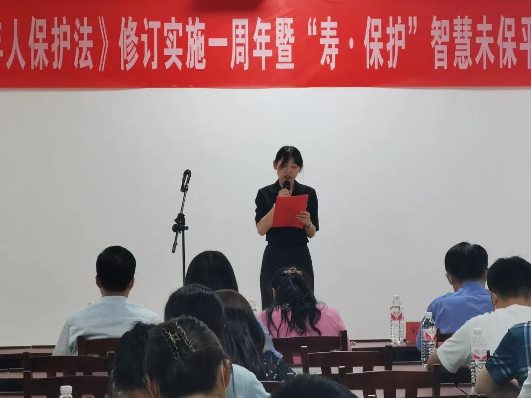 壽光市委常委、副市長、未成年人保護(hù)工作領(lǐng)導(dǎo)小組副組長陳湘穎就慶?!段闯赡耆吮Wo(hù)法》修訂實(shí)施一周年暨“壽·保護(hù)”智慧未保平臺上線致辭講話。