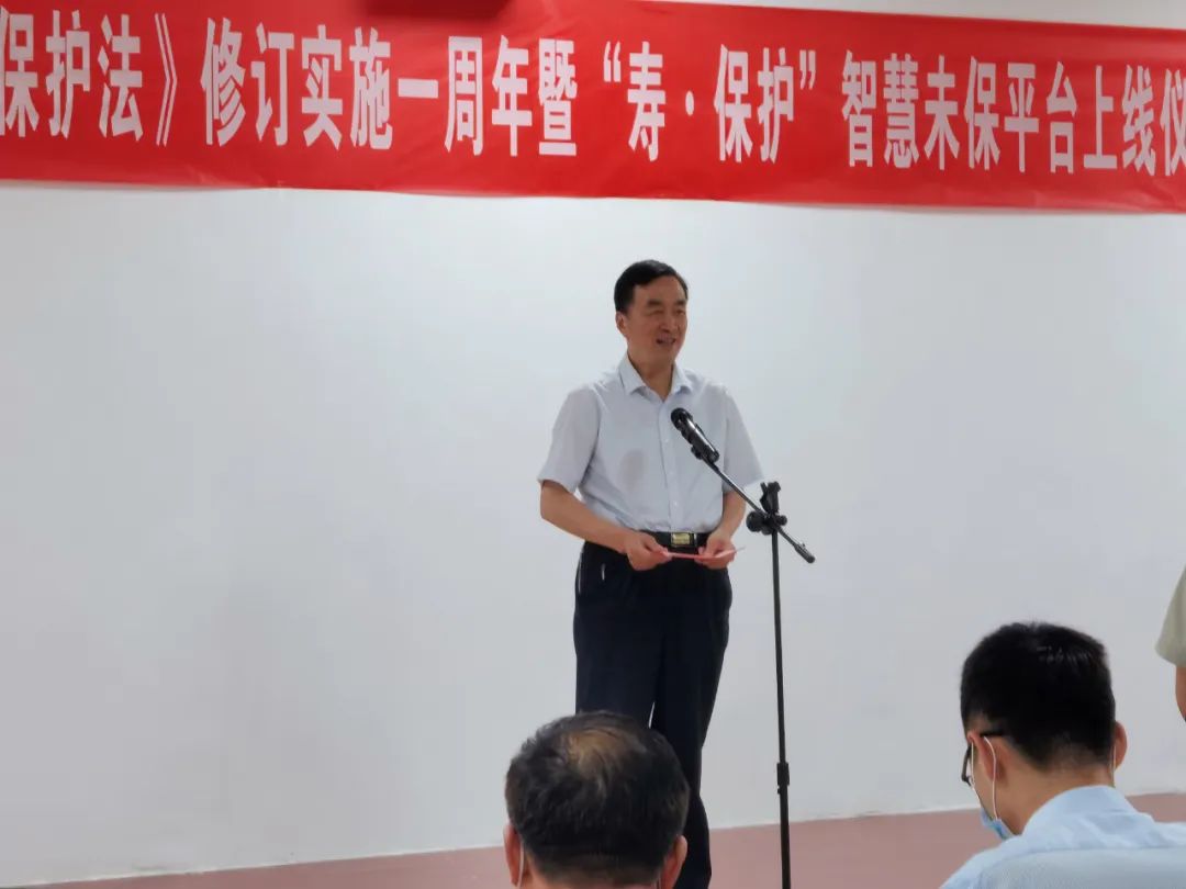 壽光市原政協(xié)主席、關(guān)工委主任王茂興宣布“壽·保護(hù)”智慧未保平臺正式上線運(yùn)行,并宣布壽光市“喜迎二十大,同心護(hù)未來”主題宣傳活動啟動。