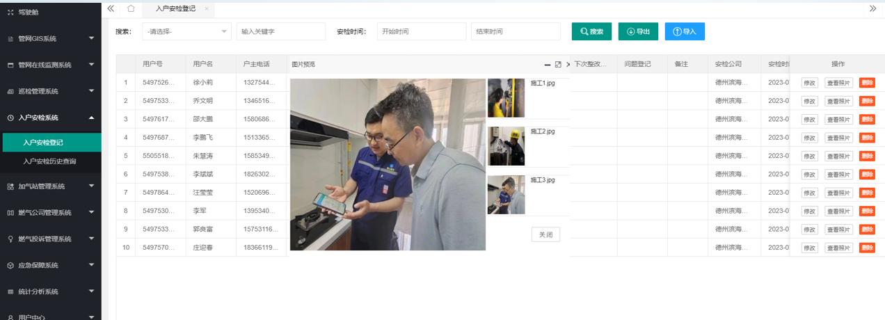 聯(lián)動管理,實現(xiàn)燃氣公司庫、從業(yè)人員庫、GIS庫、燃氣安檢用戶庫、應急處置庫等數(shù)字化管理,實現(xiàn)政府監(jiān)管部門對燃氣企業(yè)信息的全盤掌握。