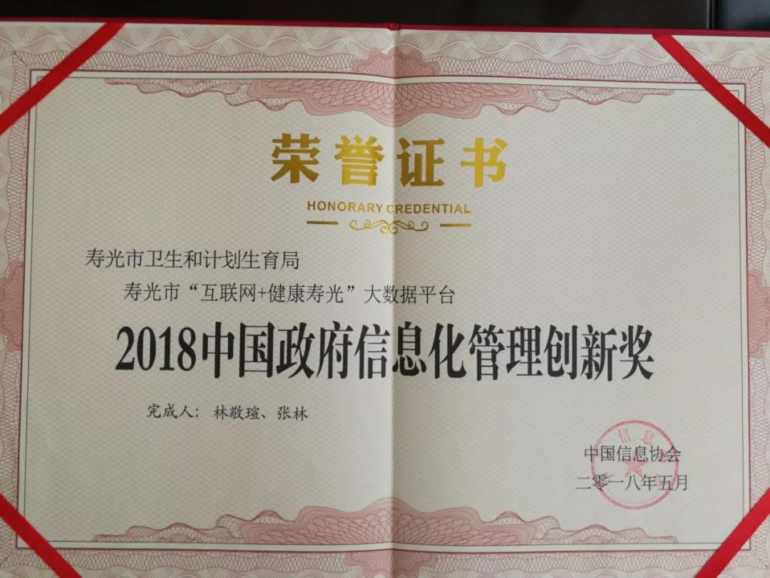 5月26日,在由國家發(fā)改委、工信委和中國信息協(xié)會聯(lián)合主辦的2018中國政府信息化大會上,環(huán)球軟件研發(fā)的“互聯(lián)網(wǎng)+健康壽光”大數(shù)據(jù)平臺榮獲“中國政府信息化管理創(chuàng)新獎”。