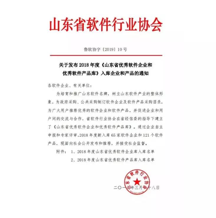 近日,山東省軟件和信息服務(wù)業(yè)協(xié)會(huì)發(fā)布了“關(guān)于發(fā)布2018年度《山東省優(yōu)秀軟件企業(yè)和優(yōu)秀軟件產(chǎn)品庫(kù)》入庫(kù)企業(yè)和產(chǎn)品的通知”,在省經(jīng)信委的指導(dǎo)下,通過(guò)企業(yè)自主申報(bào)和專家評(píng)審,最終確定入選企業(yè)和產(chǎn)品。環(huán)球軟件憑借雄厚的研發(fā)實(shí)力成功入選2018年度“山東省優(yōu)秀軟件企業(yè)”。
