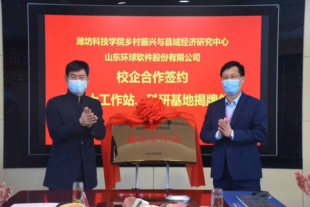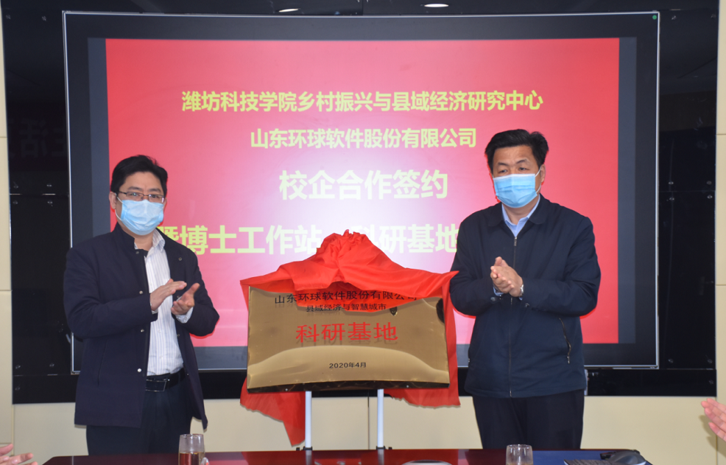 4月23日,濰坊科技學(xué)院鄉(xiāng)村振興與縣域經(jīng)濟(jì)研究中心與山東環(huán)球軟件股份有限公司校企合作簽約暨“縣域經(jīng)濟(jì)與智慧城市”博士工作站、科研基地揭牌儀式在環(huán)球軟件公司成功舉行。濰坊科技學(xué)院新時(shí)代鄉(xiāng)村振興與區(qū)域經(jīng)濟(jì)發(fā)展研究院執(zhí)行院長張友祥與環(huán)球軟件董事長劉德永共同簽署了協(xié)議書,并進(jìn)行了座談交流。壽光市政府機(jī)關(guān)黨組成員、大數(shù)據(jù)中心主任趙春生,濰坊科技學(xué)院副校長李廣偉及相關(guān)人員出席儀式。