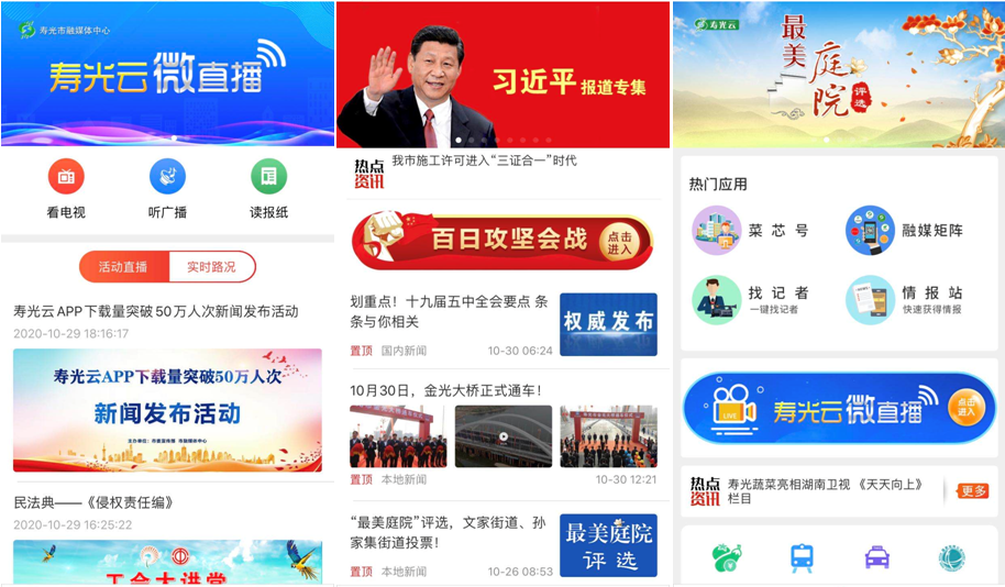 為加快推廣應(yīng)用工作,“壽光云”APP先后與華為、小米、vivo、oppo、蘋果等應(yīng)用商城進行對接,全面覆蓋了安卓和iOS兩大手機系統(tǒng)應(yīng)用商城,滿足了不同手機用戶的下載需求。針對各微信公眾號“各自運營、分散管理”的現(xiàn)狀,“壽光云”APP開設(shè)“菜芯號”版塊,把各鎮(zhèn)街區(qū)、部門單位和企業(yè)公眾微信號全部納入,加強集中統(tǒng)一管理。目前已入駐微信公眾號114個,從根本上做到了政務(wù)宣傳“一個矩陣”發(fā)聲。平臺先后與婦聯(lián)、團委、衛(wèi)健局、教育局等部門單位開辟專欄,開展“最美庭院”“農(nóng)村好青年”等各類投票評選活動10多場次,開展微直播121場次。其中,“援鄂英雄凱旋”直播收看達36.68萬人次,壽光召開發(fā)展大會時同時有12.34萬人在線觀看。