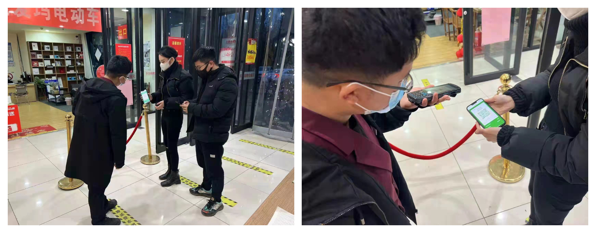 在濰坊昌樂,商超、藥店、高速口、車站、小區(qū)等場(chǎng)所入口,工作人員通過手持終端識(shí)別通行人員健康碼出入,人員信息自動(dòng)在場(chǎng)所出入健康碼登記系統(tǒng),3秒即可快速完成進(jìn)場(chǎng)登記。若檢測(cè)到途經(jīng)中高風(fēng)險(xiǎn)地區(qū)、非綠碼或是體溫不正常的人員,系統(tǒng)則會(huì)自動(dòng)攔截并及時(shí)提醒工作人員處理。同時(shí),能夠?qū)崟r(shí)記錄身份信息、健康碼狀態(tài)、快速識(shí)別核酸檢測(cè)、疫苗接種、人員活動(dòng)軌跡等數(shù)據(jù)信息,為后期的信息追溯查詢、流調(diào)管理提供精準(zhǔn)數(shù)據(jù)參考。