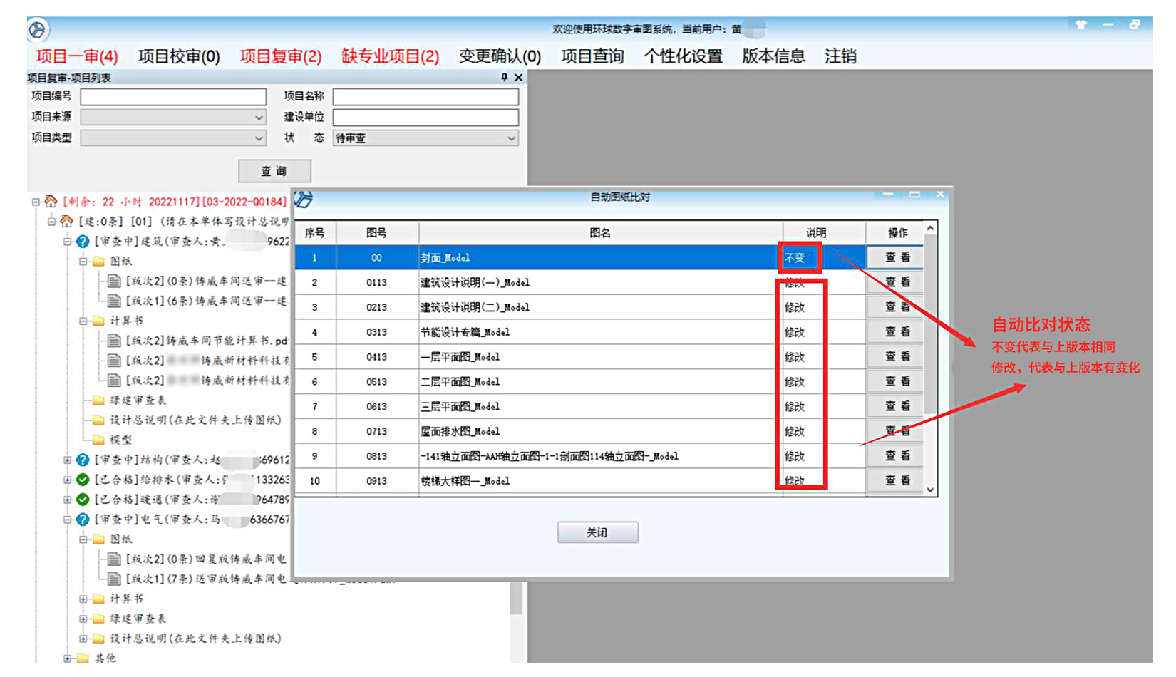 環(huán)球軟件“數(shù)字化審圖平臺”依托云服務(wù)器,將傳統(tǒng)的“人帶圖紙跑”轉(zhuǎn)變?yōu)椤皥D紙在云上走”,實現(xiàn)對勘察、建筑、結(jié)構(gòu)、電氣、給排水、暖通等專業(yè)施工圖設(shè)計文件“云上一站式”審查,圖紙上傳、受理、審查不再受時間、空間限制。平臺實現(xiàn)了從項目勘察、設(shè)計、施工、審批、監(jiān)管到檔案管理的數(shù)字化交付、管理全過程留跡、監(jiān)管有據(jù)。為協(xié)助施工圖審查人員更高效、高質(zhì)審查,平臺實現(xiàn)圖紙差異智能比對,依據(jù)文字、尺寸、圖片像素等進行精準(zhǔn)比對,通過對比解析,兩版圖紙具體修改的部分或差異用色塊標(biāo)識,修改痕跡、審查意見和設(shè)計單位修改情況等都保留在系統(tǒng)數(shù)據(jù)庫中,管理部門可隨時查看審圖情況及設(shè)計單位整改情況能夠及時發(fā)現(xiàn)和處理問題,建設(shè)單位、勘察單位、設(shè)計單位、審查機構(gòu)和監(jiān)管部門之間實現(xiàn)了資源的有效整合、資源數(shù)據(jù)的共享,為企業(yè)降本增效提供強有力的支撐,助力數(shù)字化審圖業(yè)務(wù)提質(zhì)增效再提升。