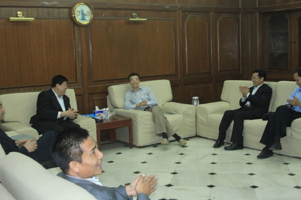 中國駐印度大使館經商處彭剛參贊會見了代表團全體成員,并詳細介紹了印度經濟社會和服務外包發(fā)展情況。