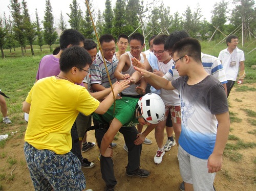 拓展中,大家相互配合,團結(jié)協(xié)作,播撒激情,奉獻智慧。對于高空項目,雖然部分員工有恐高癥,但團隊每位成員勇敢地攀登;特別是“畢業(yè)墻”要求每位成員在限定的時間內(nèi)翻過4.2米高的金屬墻體,團隊成員的脊梁和手臂就是攀爬的“梯子”,通過大家的智慧和密切合作,我們在最短的時間完成任務。