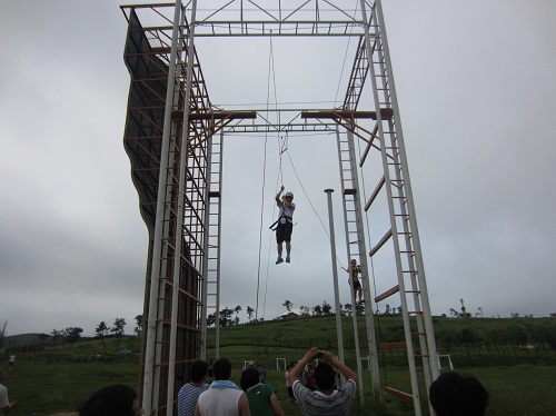 在三天的素質(zhì)拓展訓練活動中,我們在專業(yè)教練的帶領(lǐng)下,完成了盲人方陣、風雨人生路、高空單杠、空中斷橋、畢業(yè)墻等以激發(fā)個人潛能、熔煉團隊智慧的一系列新奇刺激、寓意深長的素質(zhì)拓展訓練課程。