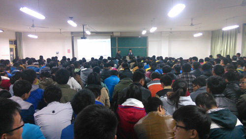 對于成功的五要素,宋勝泉經(jīng)理進行了層層剖析,淋漓盡致,并生動形象地講述自己的人生經(jīng)歷、創(chuàng)業(yè)經(jīng)歷,真實形象地展現(xiàn)了自身年輕氣盛之時的拼搏奮斗史,感染地在場的師生熱血沸騰。演講結(jié)束時,全場師生起立,齊呼口號:“我要行動,現(xiàn)在要行動......行動,行動,行動!”