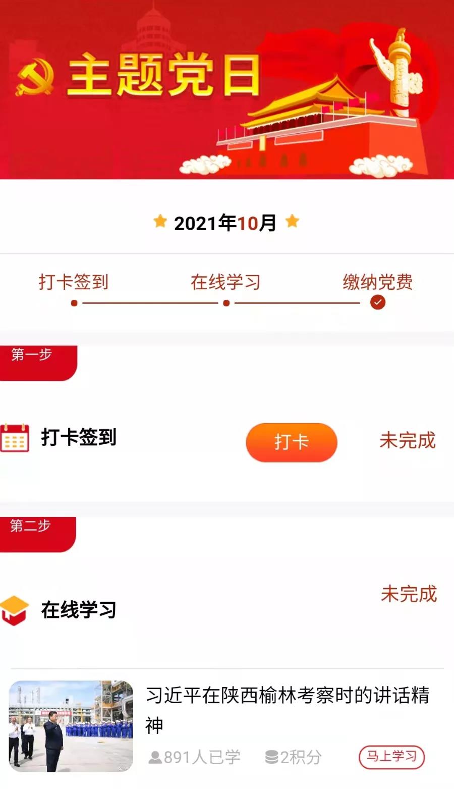 每月打卡,校準政治“生物鐘”。每月15日作為全市各基層黨組織的主題黨日,組織流動黨員利用“紅鳶在線”進行線上打卡,促使黨員形成自覺參加組織生活的政治“生物鐘”。把黨史學習教育書籍“搬”到線上,通過圖文、視頻等形式展現(xiàn),方便流動黨員隨時隨地學,在線參學打卡率達到90%以上。針對繳納黨費不及時、不方便等問題,專門設置繳費版塊,明確繳納標準、金額,動動手指實現(xiàn)一鍵提交。